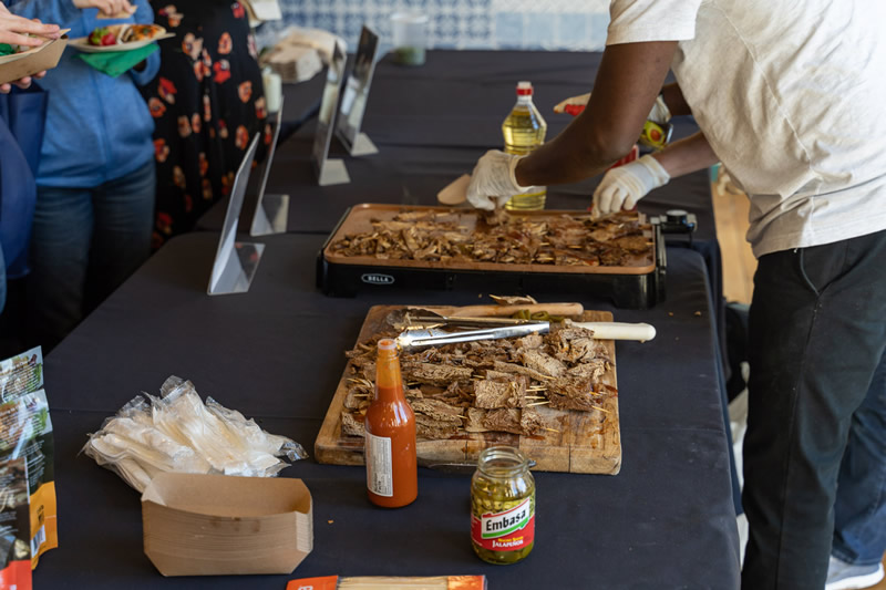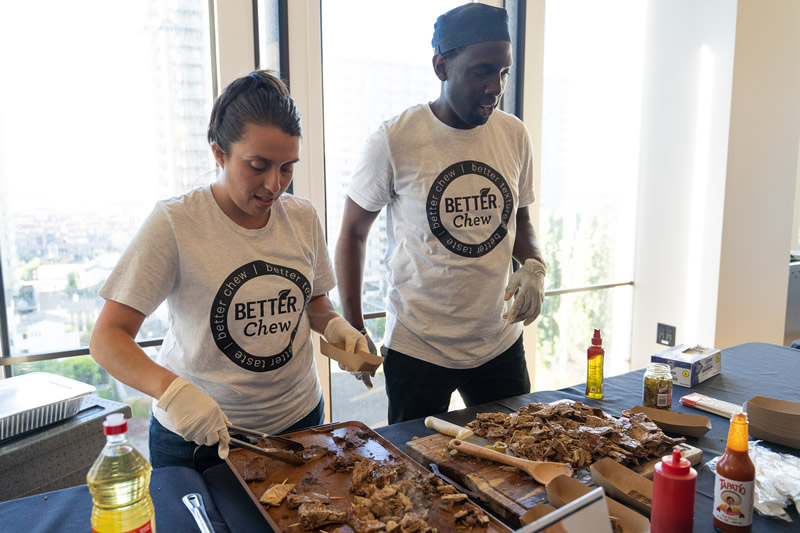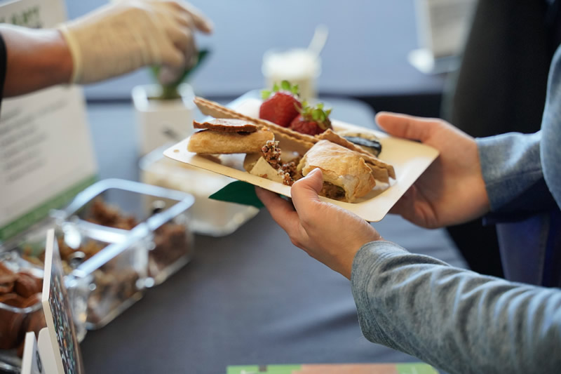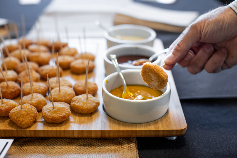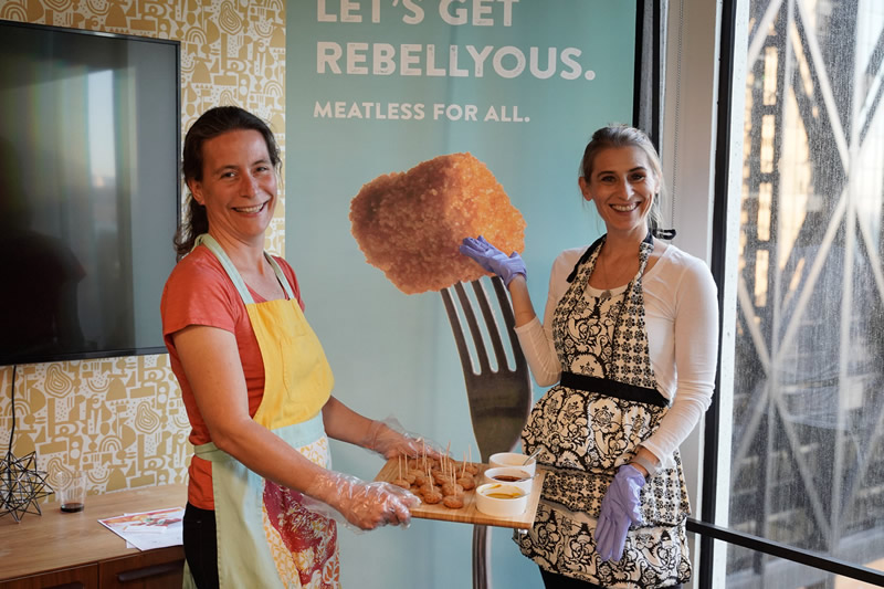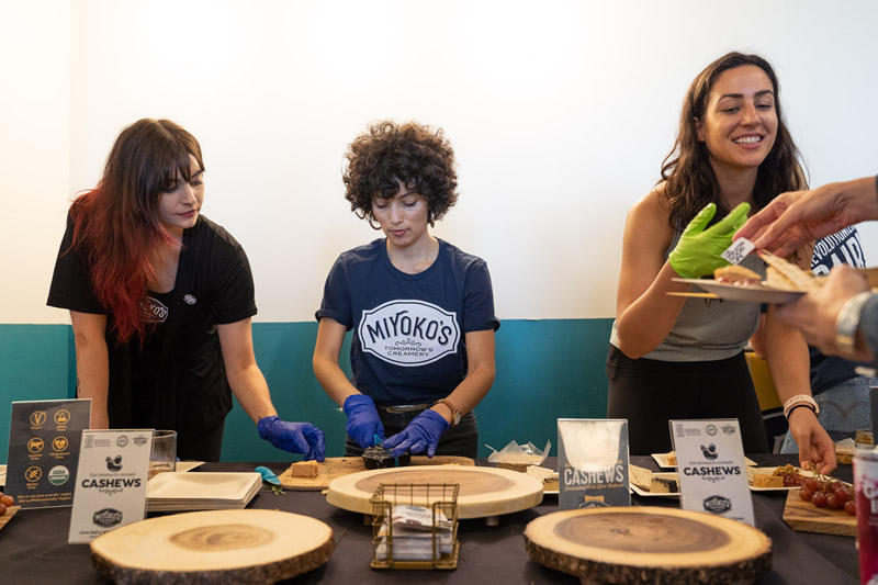 Our plant-based and “plant-curious” attendees alike delighted in philly-cheesesteak burritos from Alpha Foods, creamy soft-serve ice cream from Eclipse Foods, bite-sized quiches from JUST, gourmet butter and cheese from Miyoko’s, fancy pizzas from Pizza Plant, and fried “chicken” and “steak” courtesy of Chef Chew at Something Better Foods.